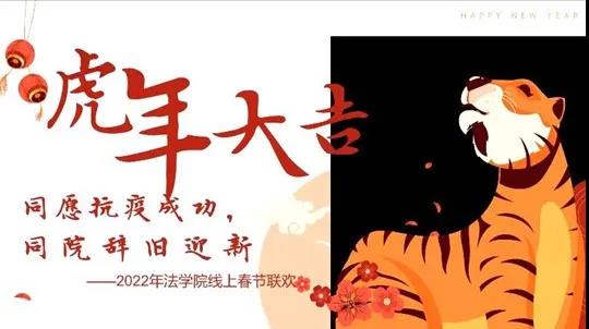 恭送金牛旧岁去,祝语千万迎玉虎。新春伊始,2022年法学院线上春节联欢会于2月3日(大年初三)晚圆满落幕。在全国各地欢度新年的南开法学学子和老师们通过腾讯会议的方式,在线上联欢“云相聚”,共同度过了一个欢乐美好的夜晚。南开大学法学院党委书记崔满顺老师、南开大学法学院院长付士成老师、南开大学法学院团委书记周翠翠、团委全体老师以及百余名同学共同参与了本次活动。